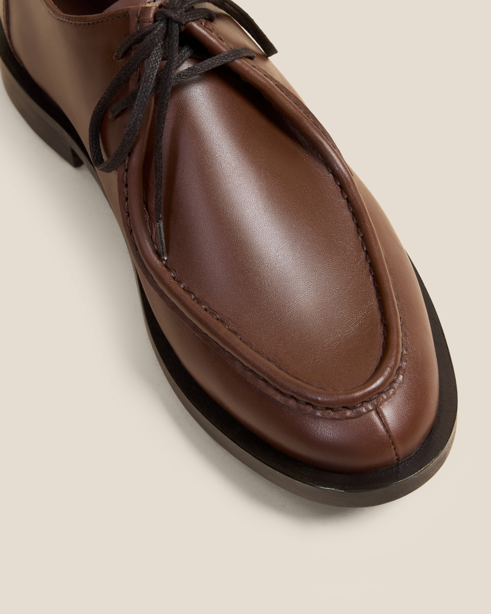 Tyrolean lace-up shoe built for city traction. Keanu’s moc-toe upper is cut from supple leather and sits on a compact rubber sole engineered for grip and resilience, finding the sweet spot between nonchalant and precise.