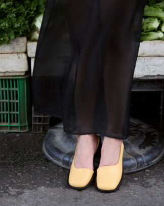 INR 14,900A squared-toe slingback mule with a continuous topline that forms the brand’s namesake slash, finished with an all-round plain welt and elastic detailing on the backstrap. Set on a 1.25-inch block heel with a high-density natural rubber sole.